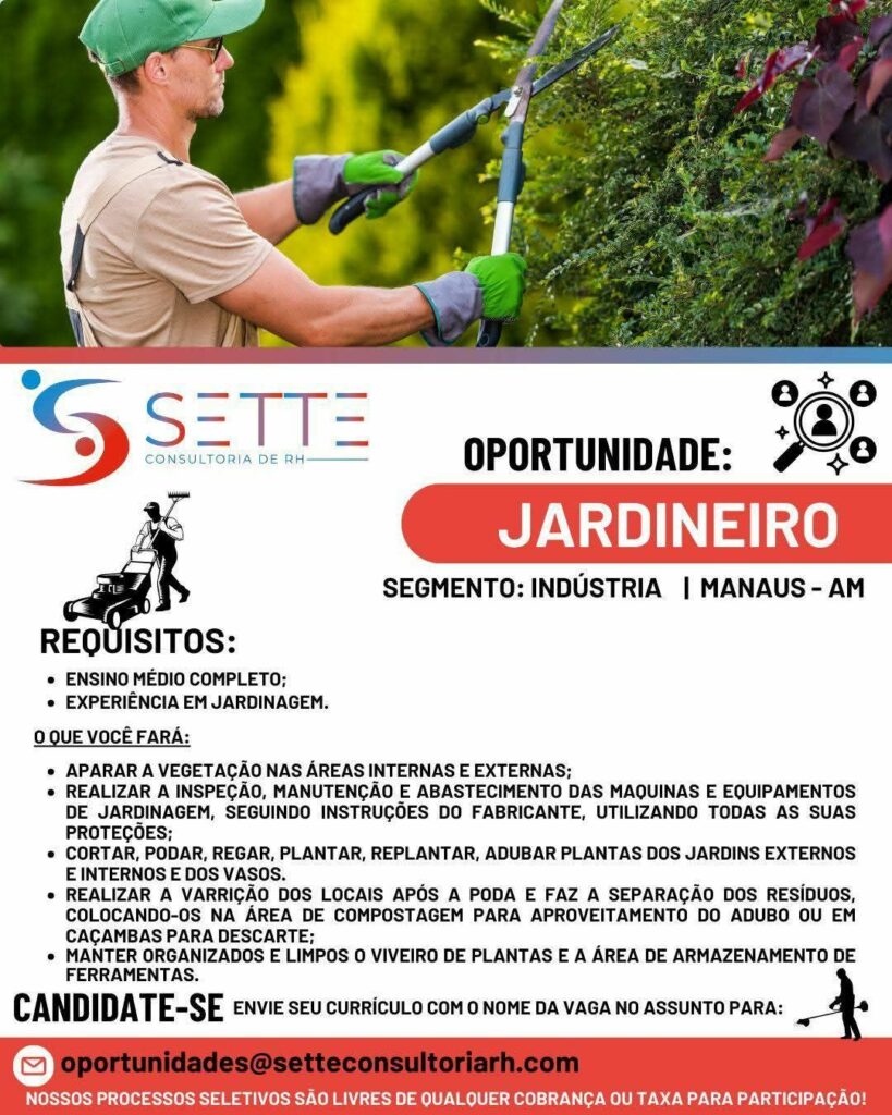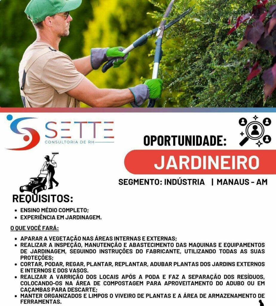 Jardineiro e mais 06 cargos estão disponíveis; Envie seu currículo!
