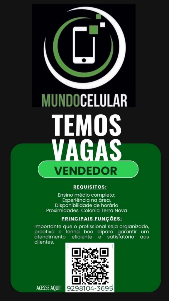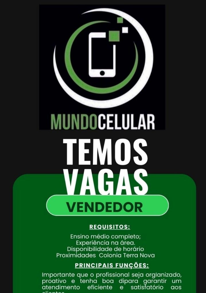 Loja de celular seleciona Vendedor; Envie seu currículo!