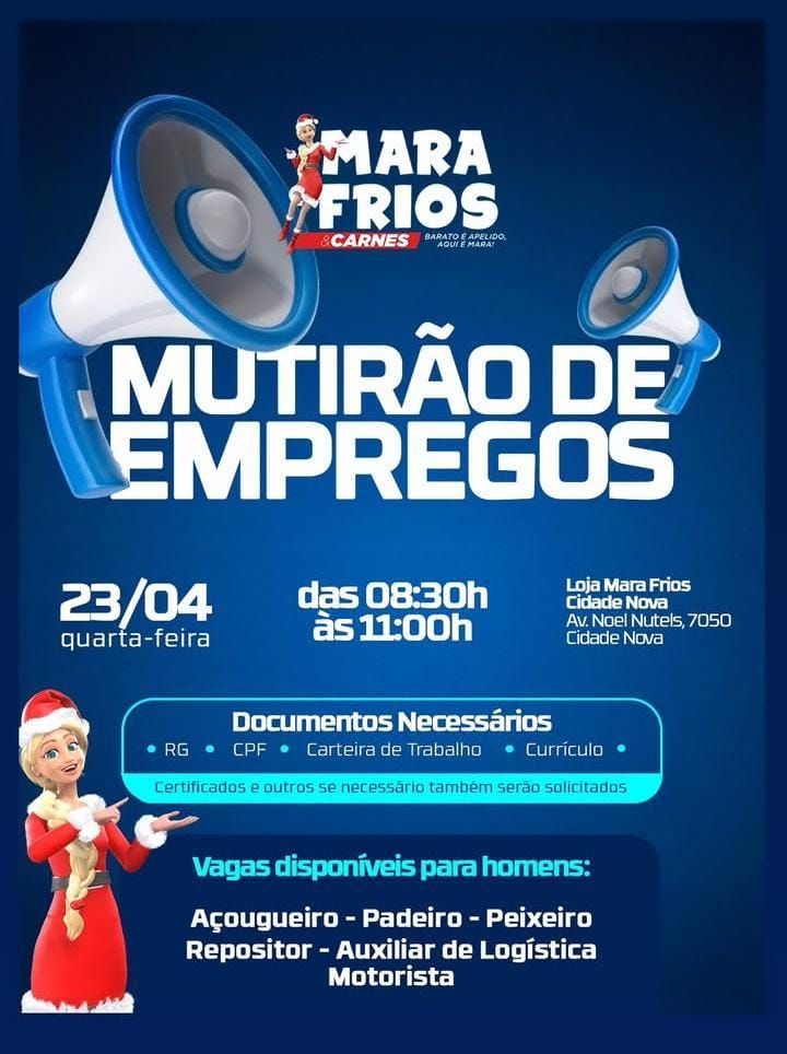Mara frios seleciona Açougueiro, Padeiro, Peixeiro, Repositor, Auxiliar de logística, Motorista; Envie seu currículo!