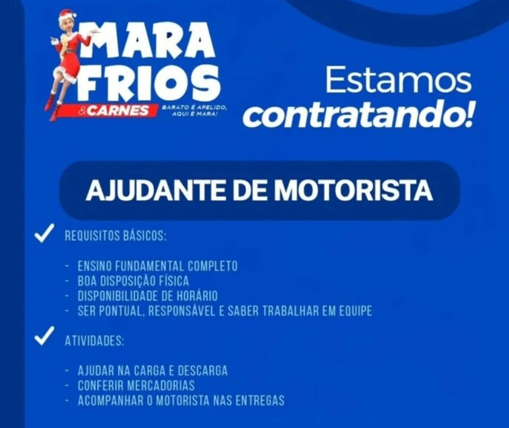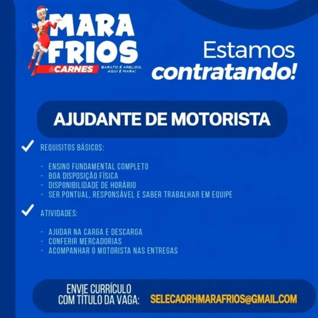 Mara frios seleciona Ajudante de Motorista; Envie seu currículo!
