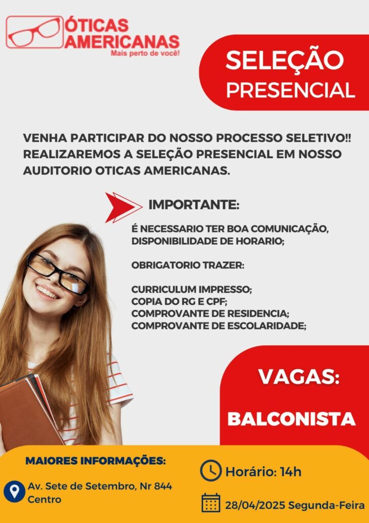 Óticas Americanas está selecionando Balconista; Envie seu currículo!