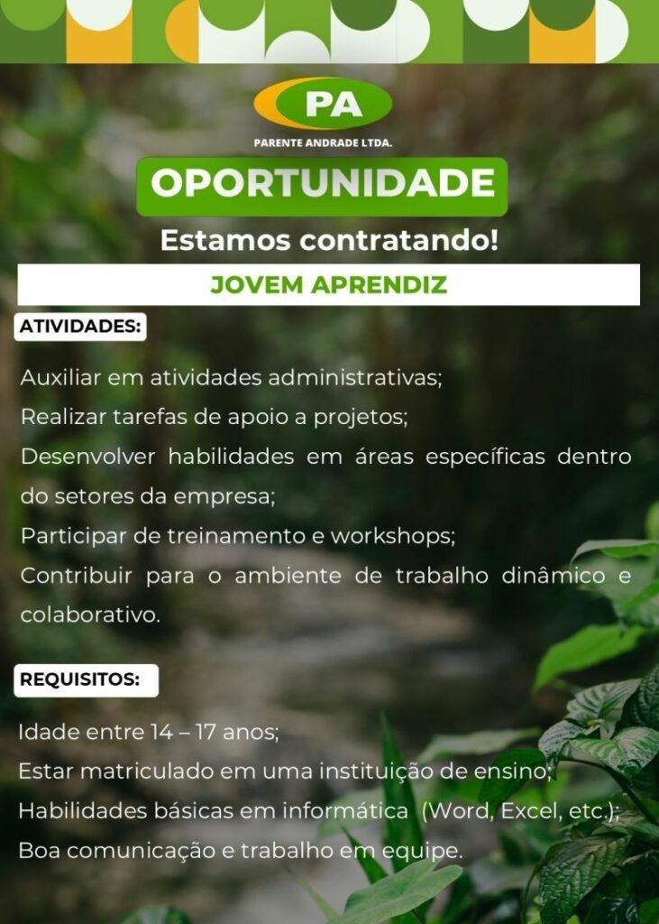 Parente andadre seleciona Jovem Aprendiz; Envie seu currículo!