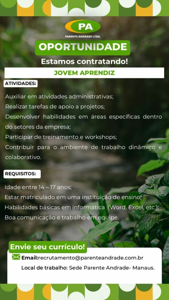 Empresa HR da Amazônia Seleciona Aprendiz adm; Envie seu currículo!