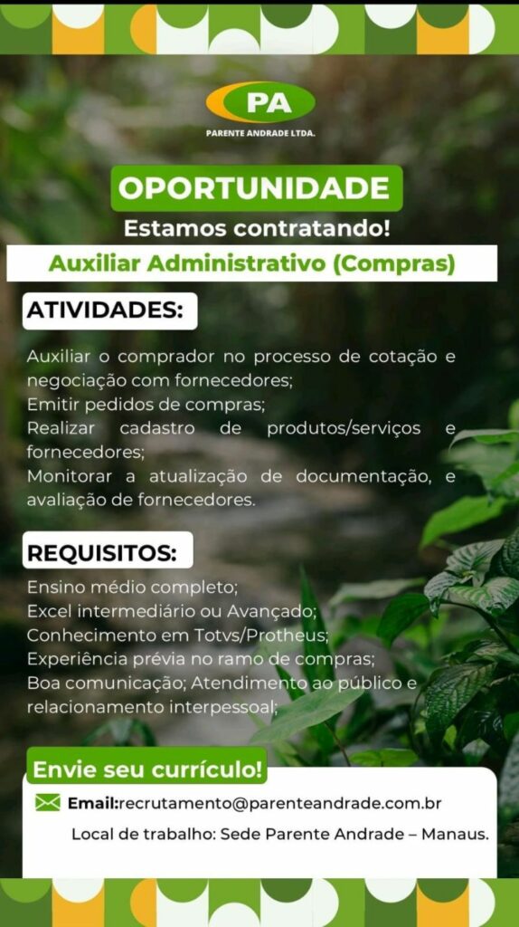 Parente Andrade seleciona para vagas de emprego