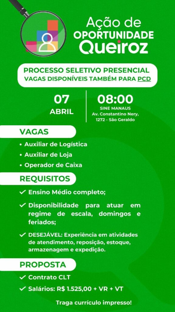 Queiroz seleciona Auxiliar de logística, Auxiliar de loja, Operador de caixa; Envie seu currículo!