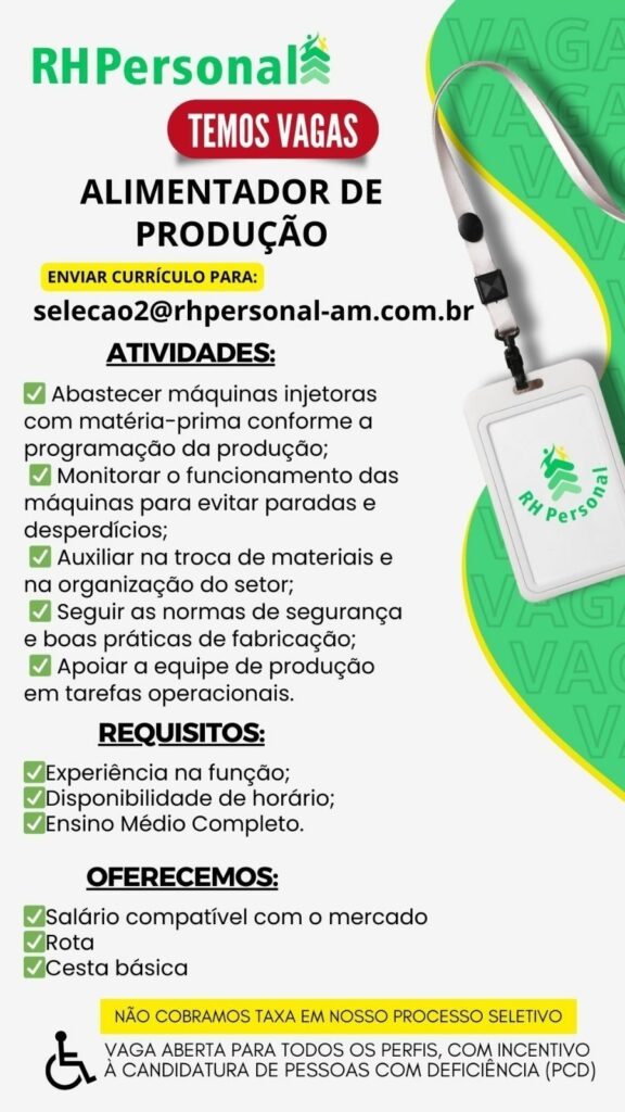 Rh está selecionando Alimentador de Produção; Envie seu currículo!
