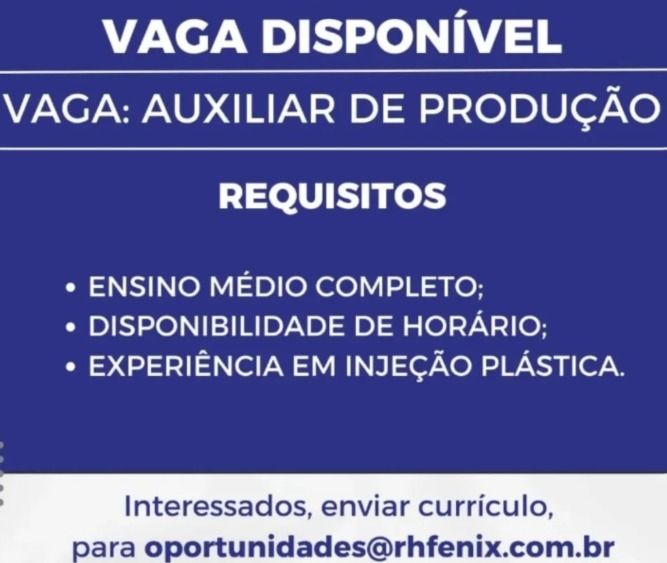 Rh está selecionando Auxiliar de produção; Envie seu currículo!