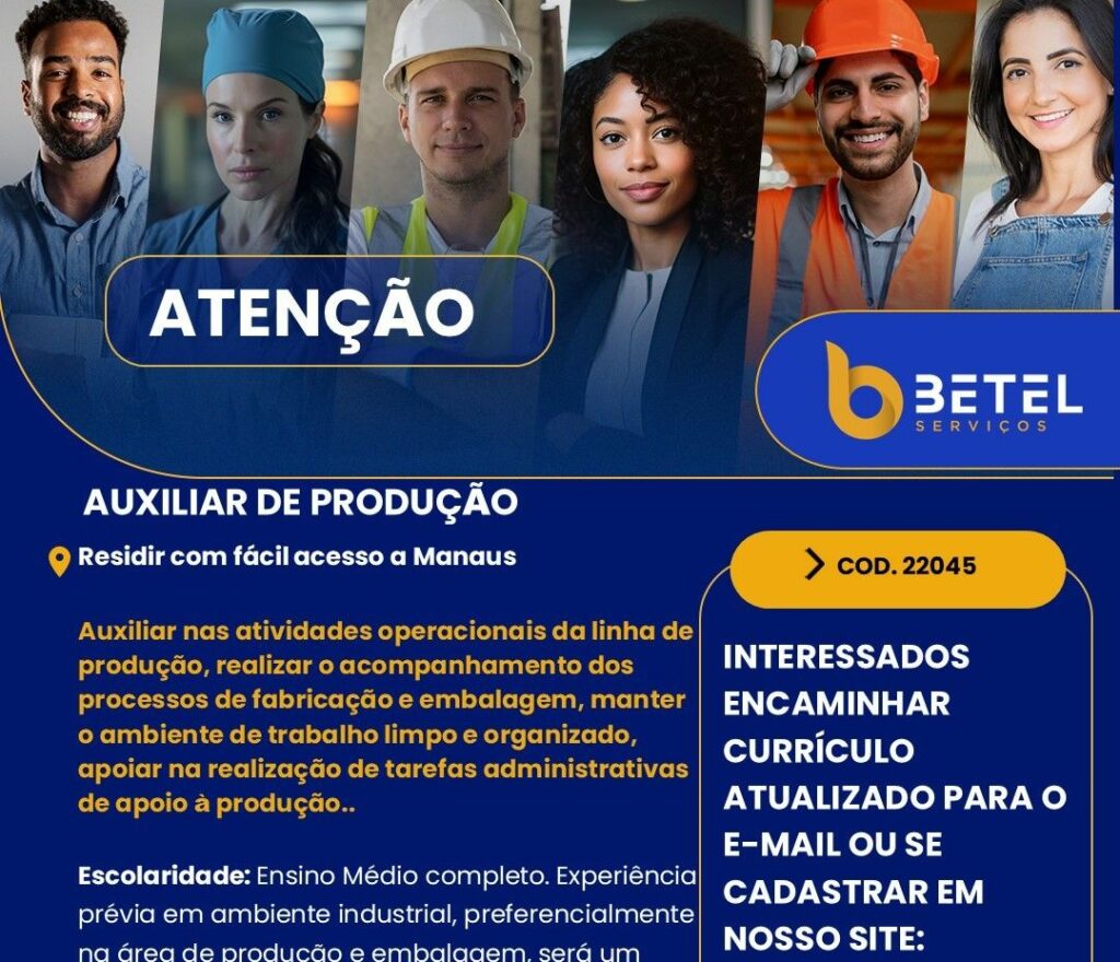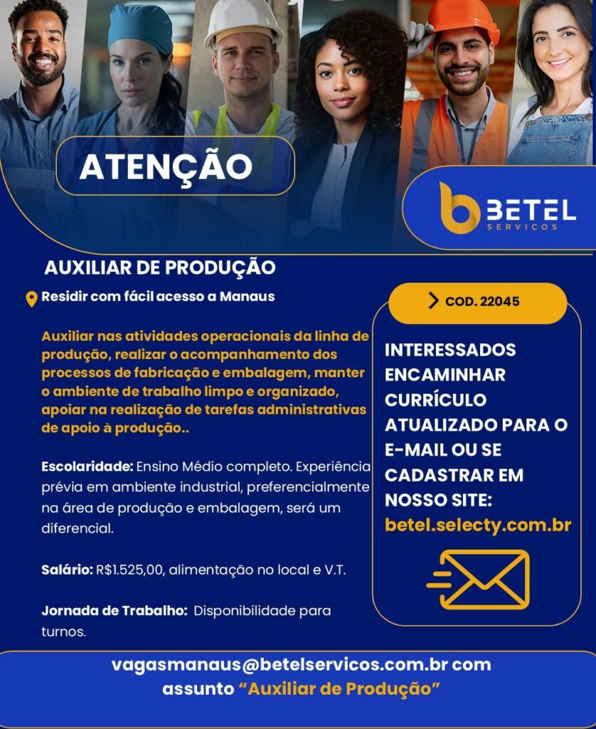 Vagas no 2º Turno Auxiliares de Produção Para Trabalhar no Distrito