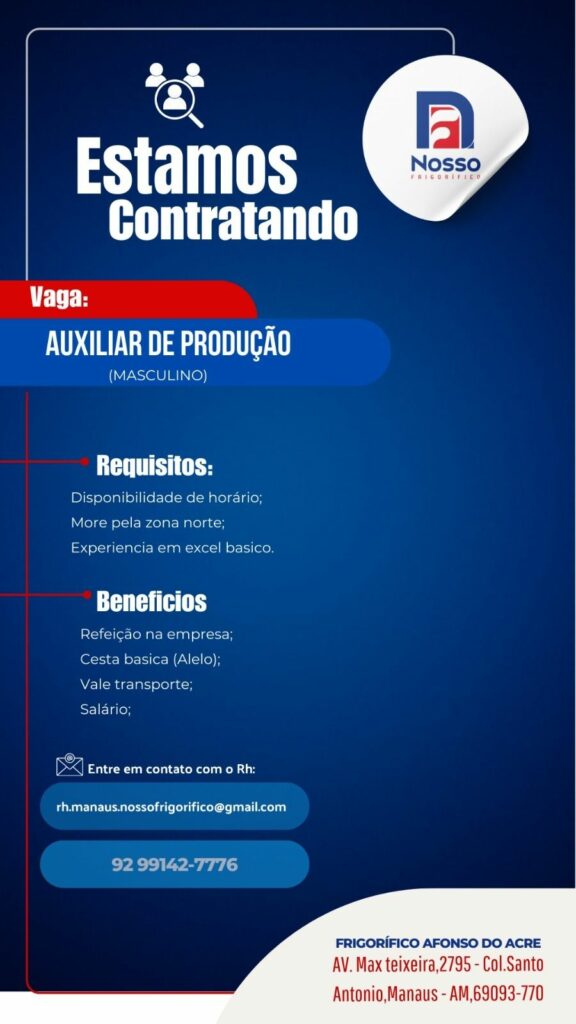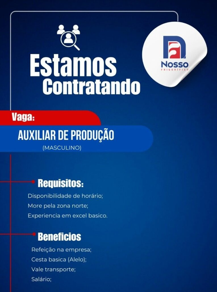 Rh está selecionando Auxiliar de produção; Envie seu currículo!