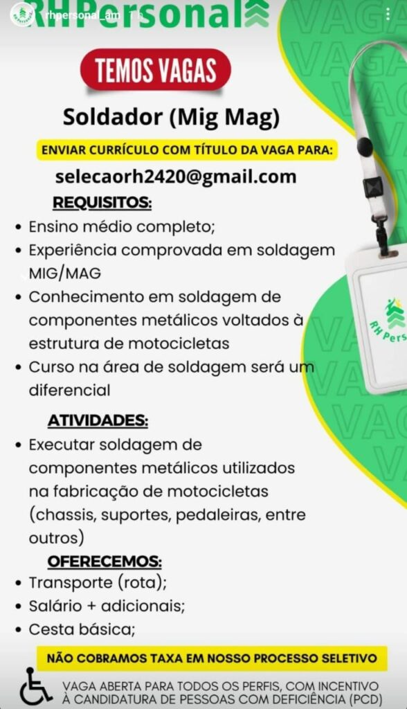 Rh está selecionando Soldador mig mag; Envie seu currículo!