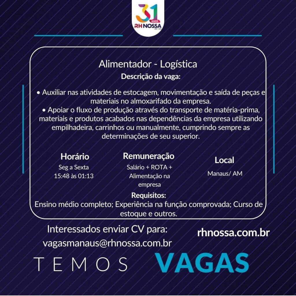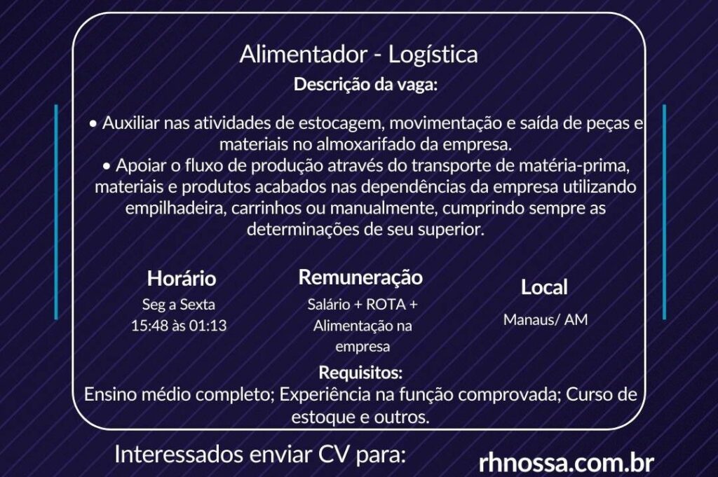 Rh seleciona Alimentador logística; Envie seu currículo!