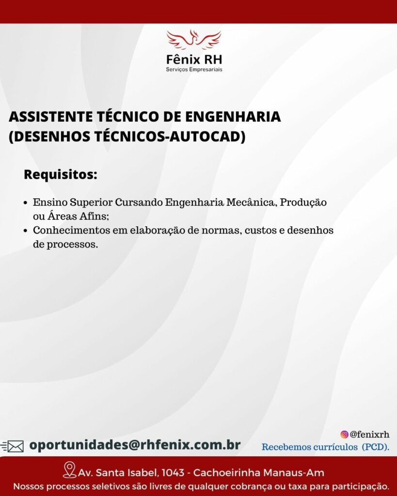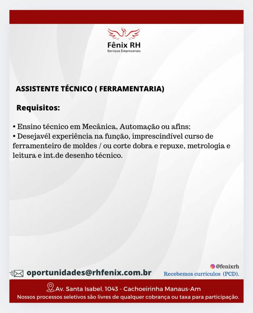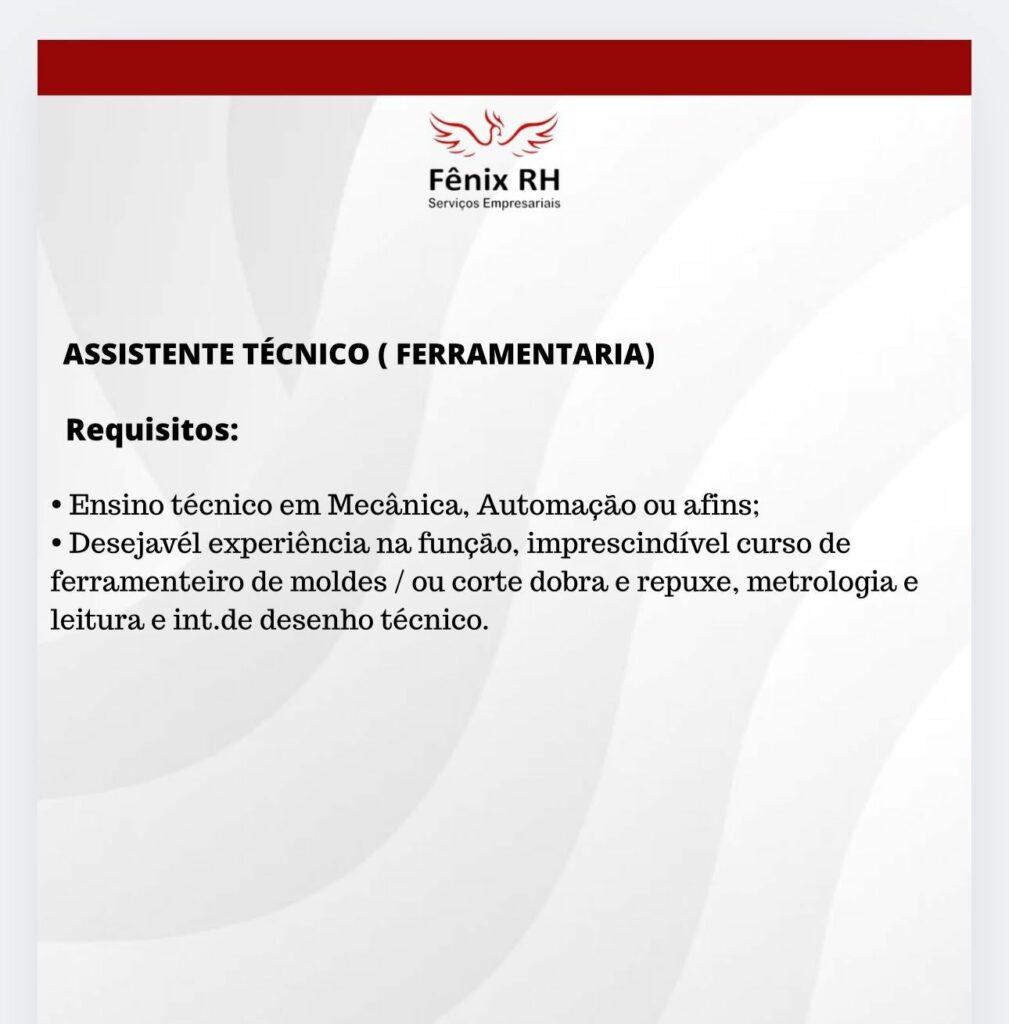 Rh seleciona Assistente técnico Ferramentaria, Assistente técnico de engenharia desenhos técnicos auto card; Envie seu currículo!