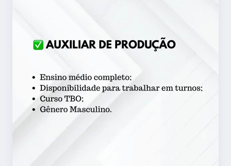 Empresa está selecionando Auxiliar de produção; Envie seu currículo!