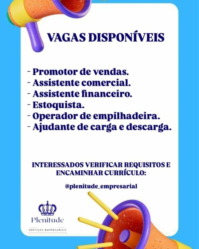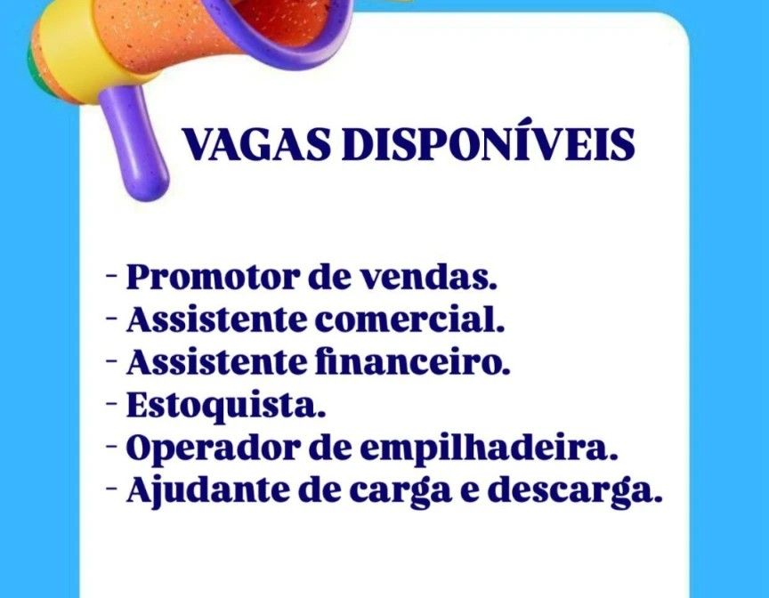 Rh seleciona Promotor de vendas, Assistente financeiro, Assistente comercial, Estoquista, Operador de empilhadeira, Ajudante de carga e descarga; Envie seu currículo!