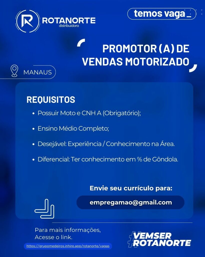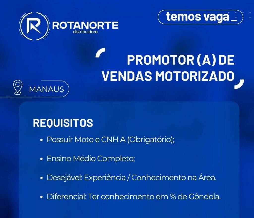 Rotanorte está selecionando Promotor (a) de vendas Motorizado; Envie seu currículo!