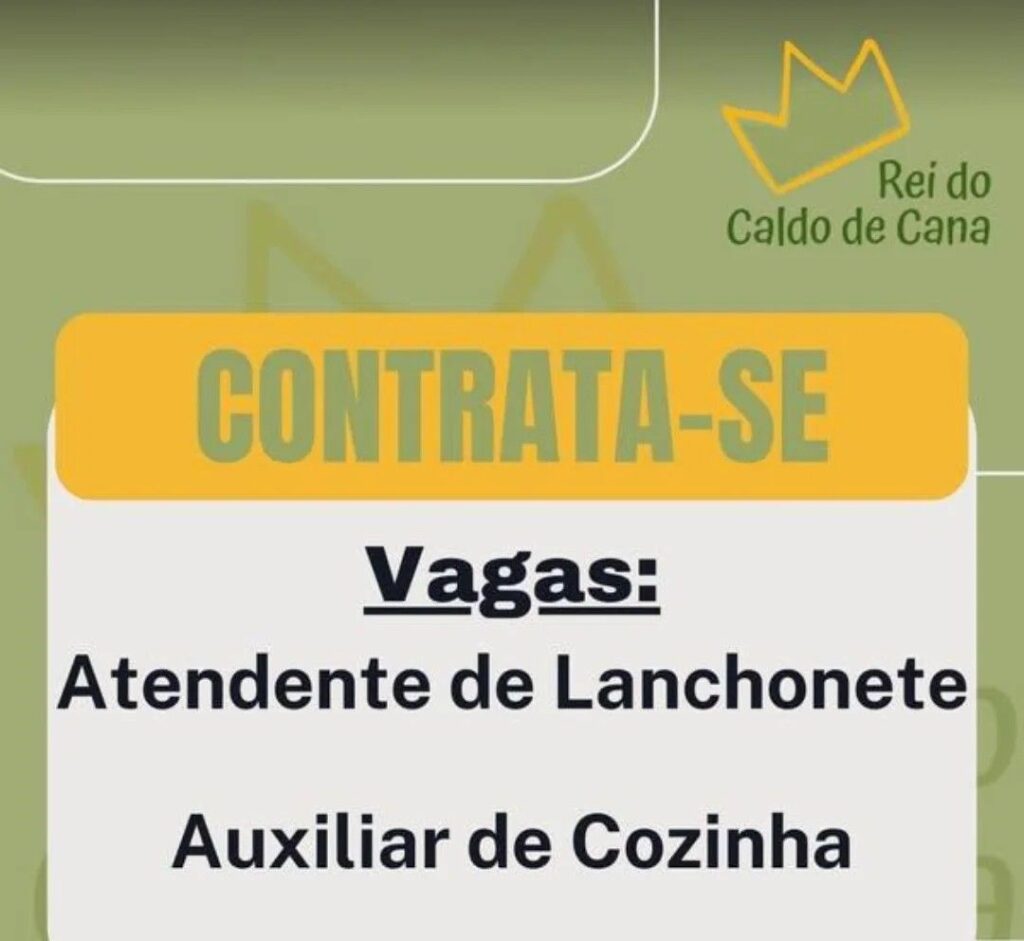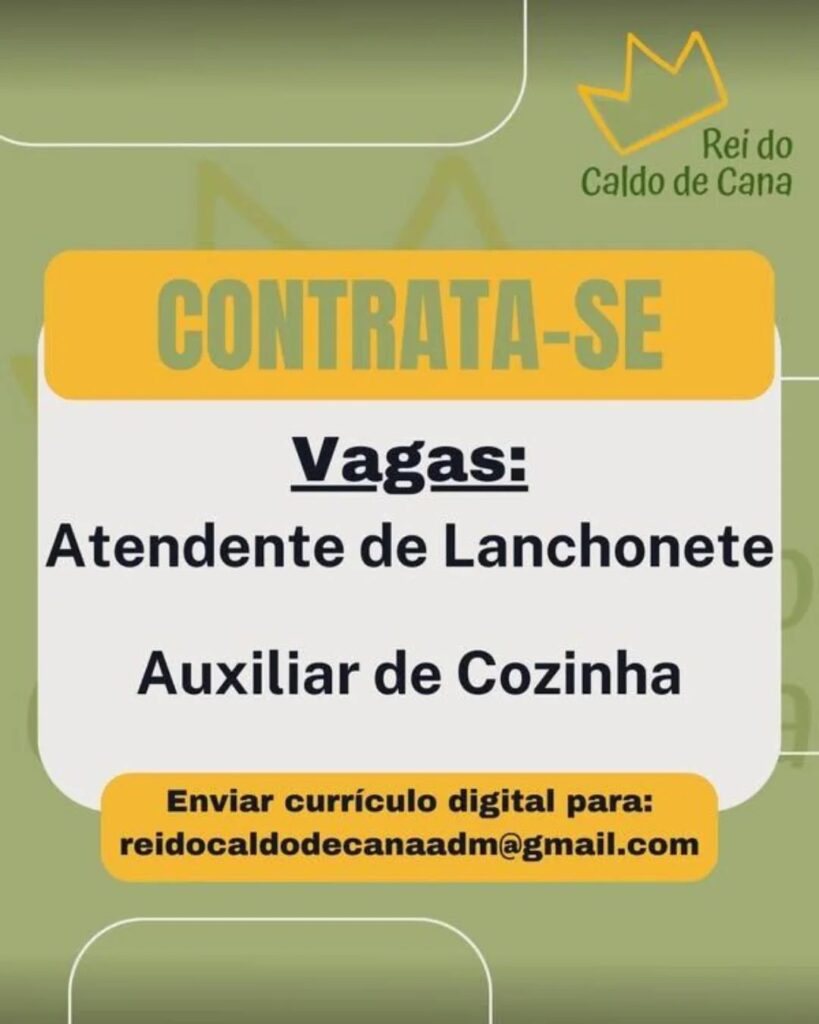 Seleção para seguintes vagas Atendente de lanchonete, Auxiliar de cozinha; Envie seu currículo!