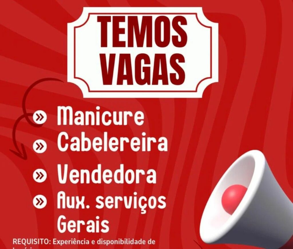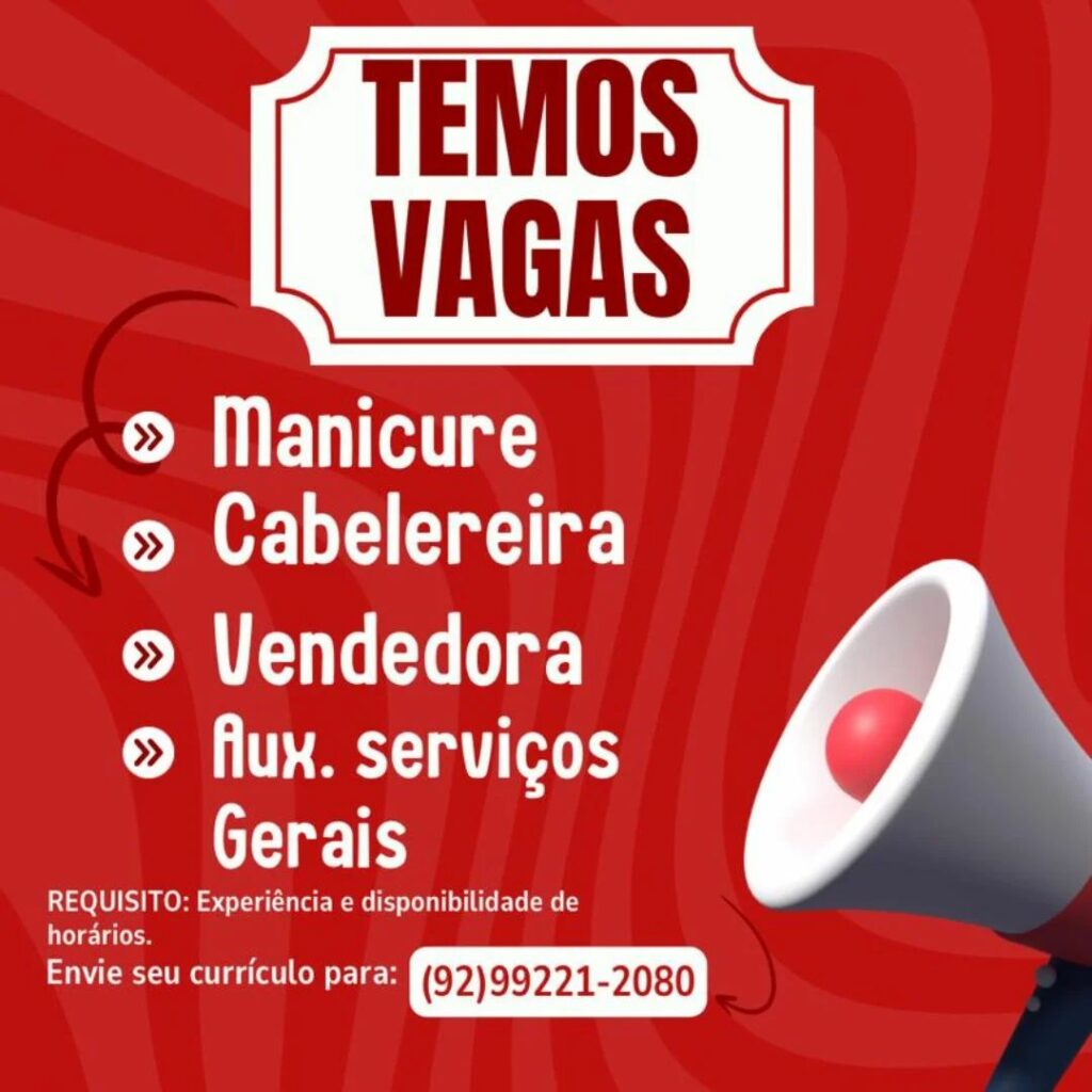 Seleção para seguintes vagas Auxiliar de serviços gerais, Vendedora, Cabeleireira, Manicure; Envie seu currículo!