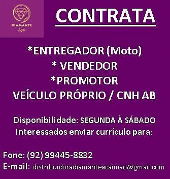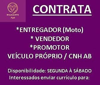 Seleção para seguintes vagas Entregador moto, Vendedor, Promotor; Envie seu currículo!
