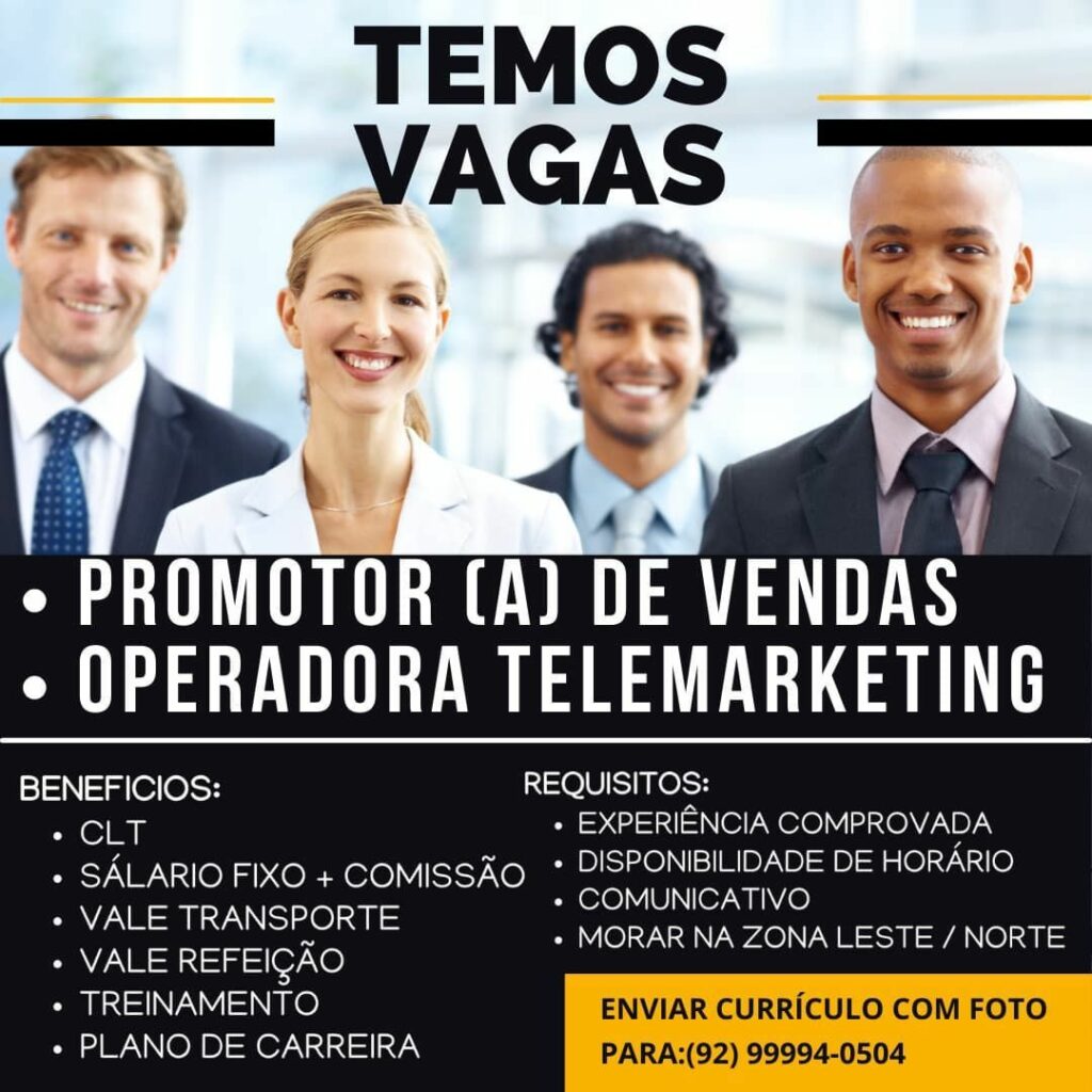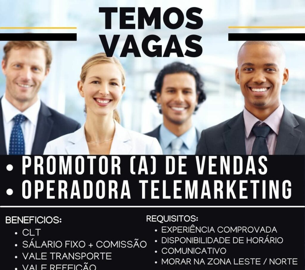 Seleção para seguintes vagas Promotor (a) de vendas, Operadora telemarketing; Envie seu currículo!
