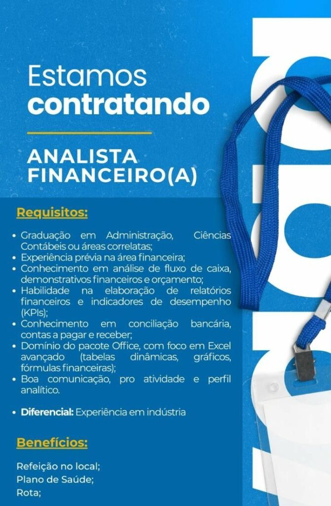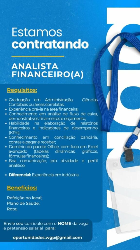 Seleção para vaga de Analista financeiro (a); Envie seu currículo!