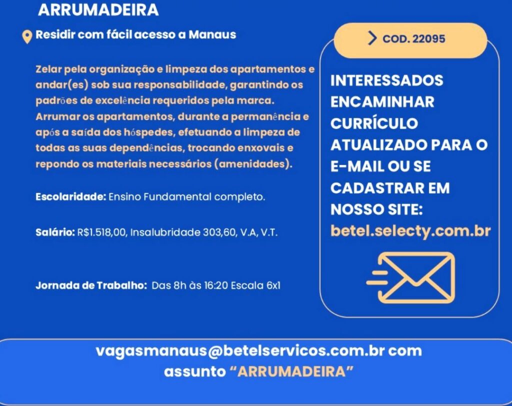 Seleção para vaga de Arrumadeira; Envie seu currículo!