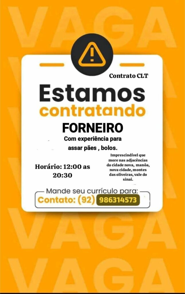 Seleção para vaga de Forneiro; Envie seu currículo!