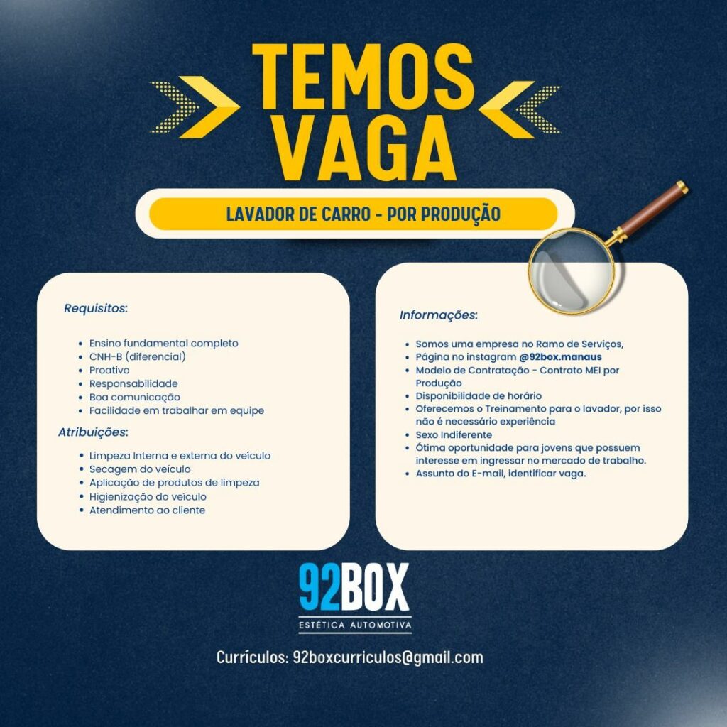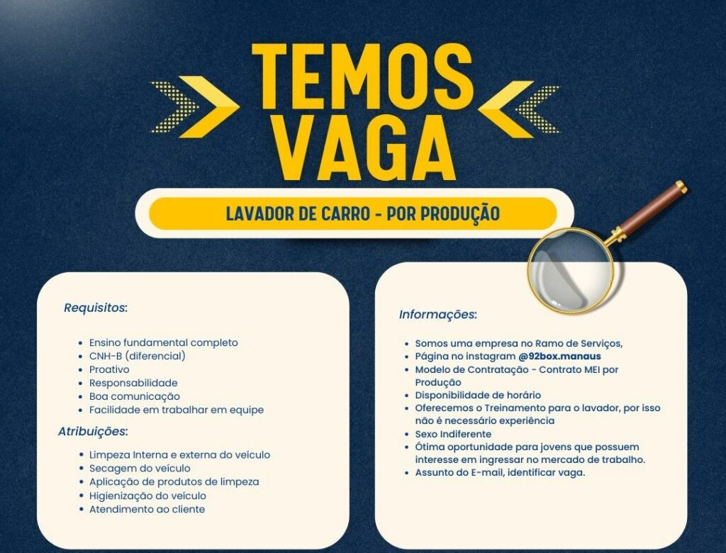 Seleção para vaga de Lavador de carros produção; Envie seu currículo!