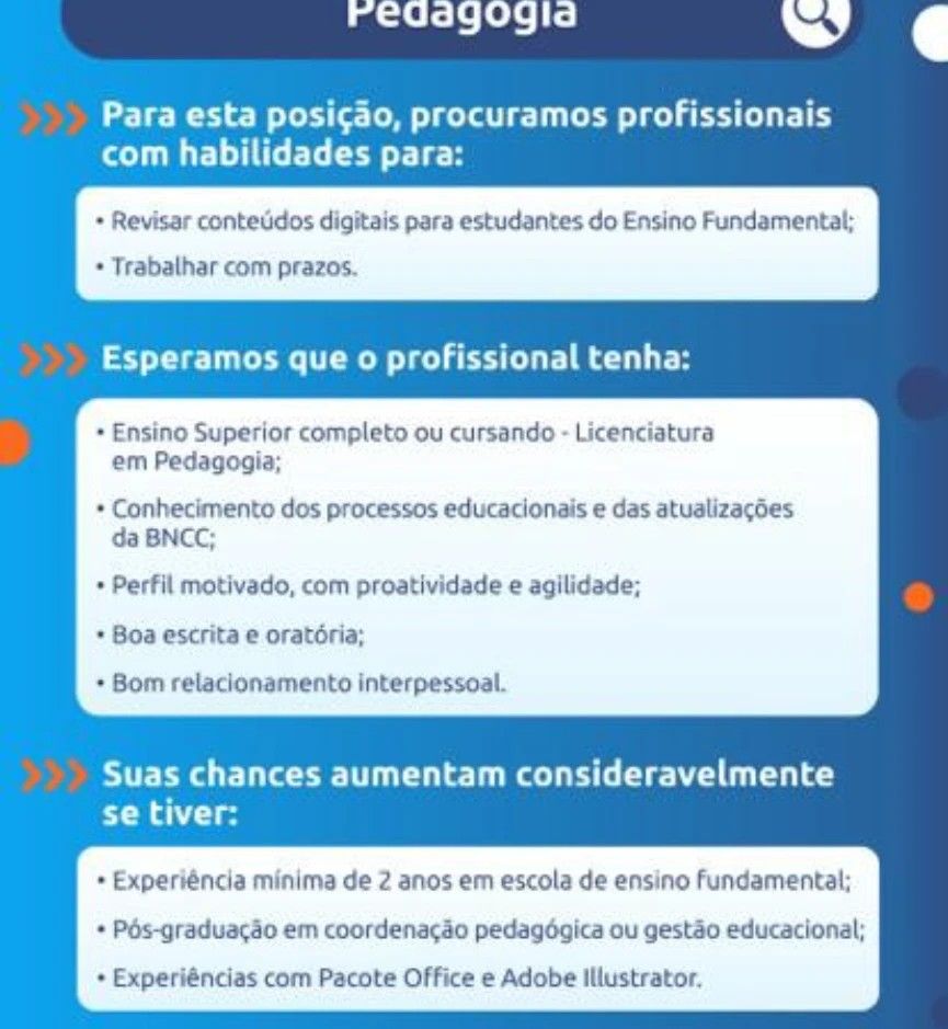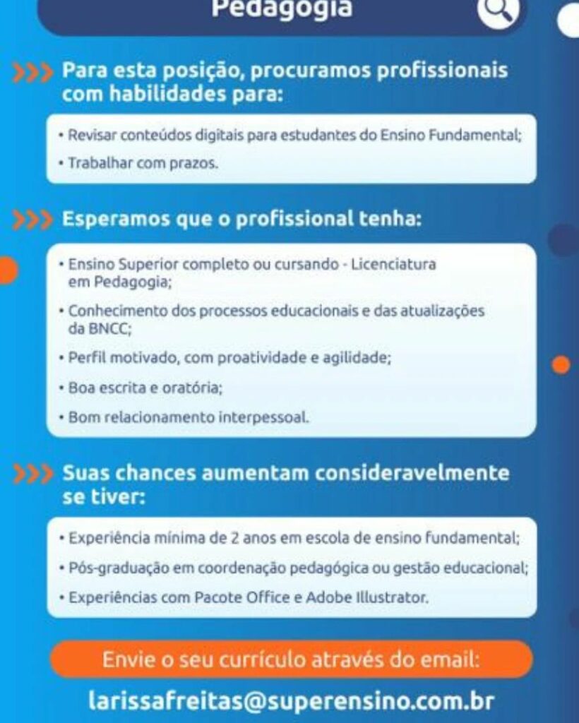 Seleção para vaga de Licenciatura em Pedagogia; Envie seu currículo!
