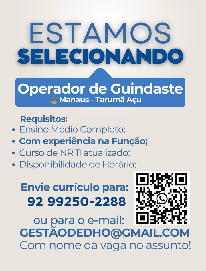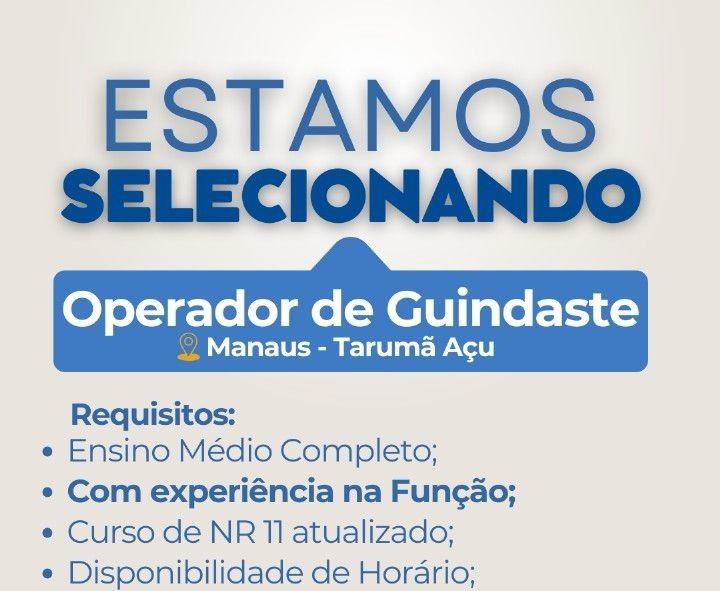Seleção para vaga de Operador de guindaste; Envie seu currículo!