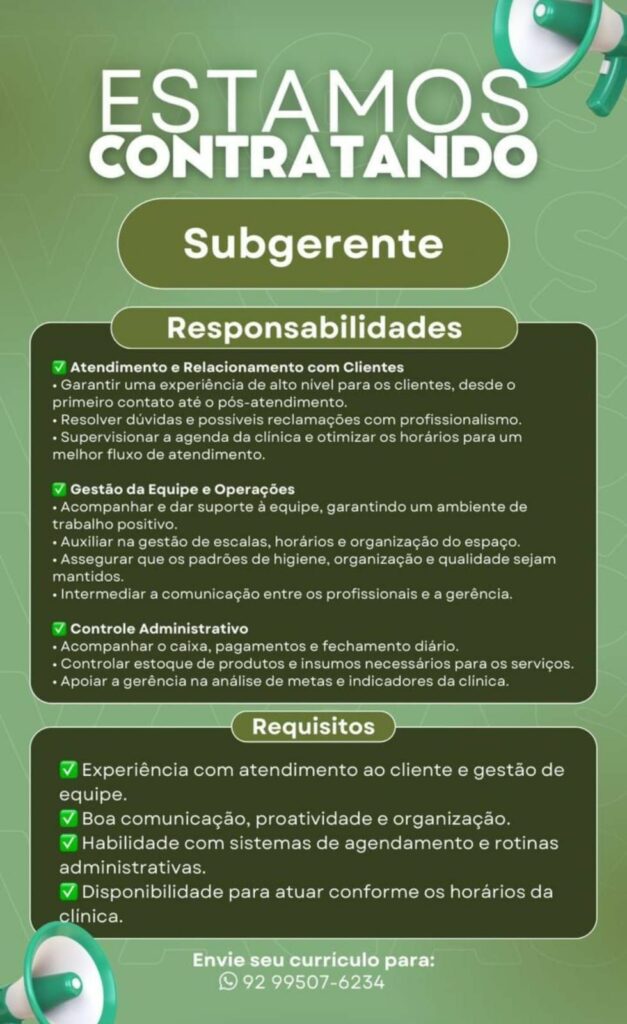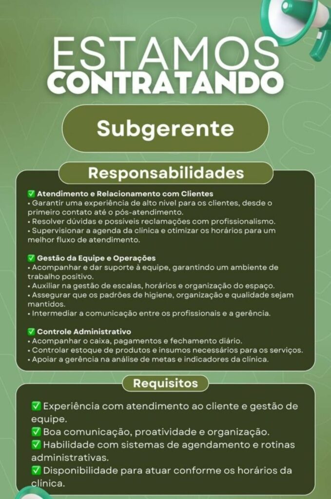 Seleção para vaga de Subgerente; Envie seu currículo!
