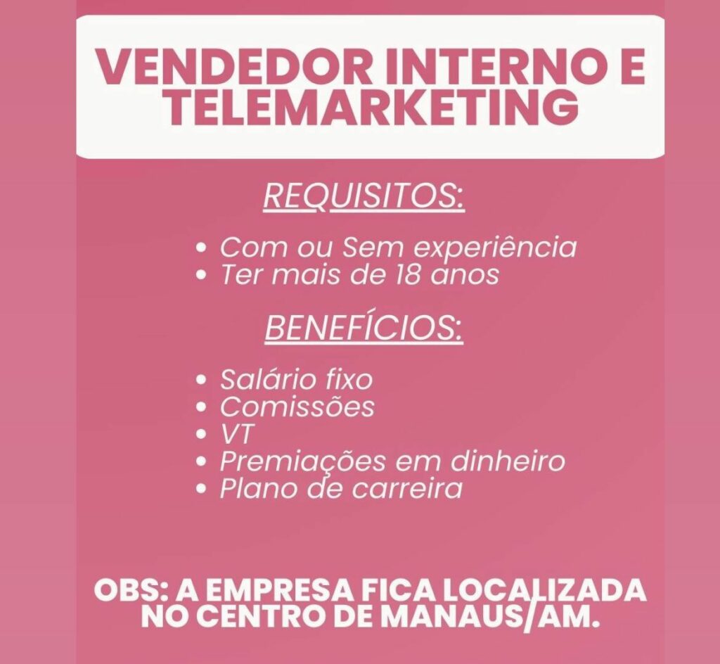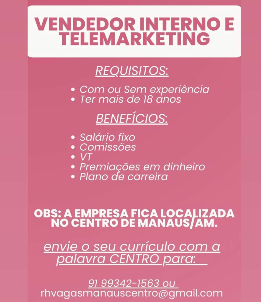 Seleção para vaga de Vendedor interno e telemarketing; Envie seu currículo!