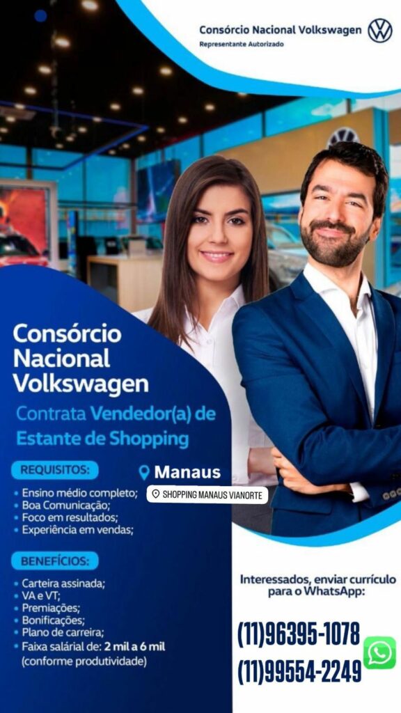 Shopping Manaus via norte seleciona Vendedor (a); Envie seu currículo!