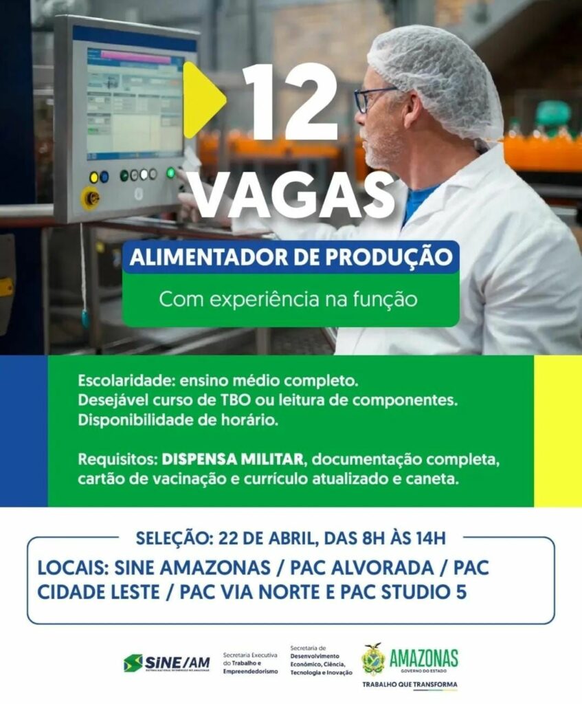 Sine seleciona Alimentador de produção; Envie seu currículo!