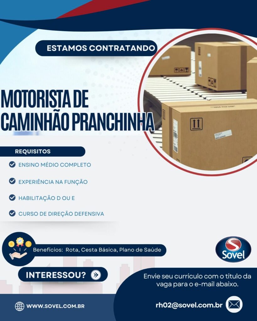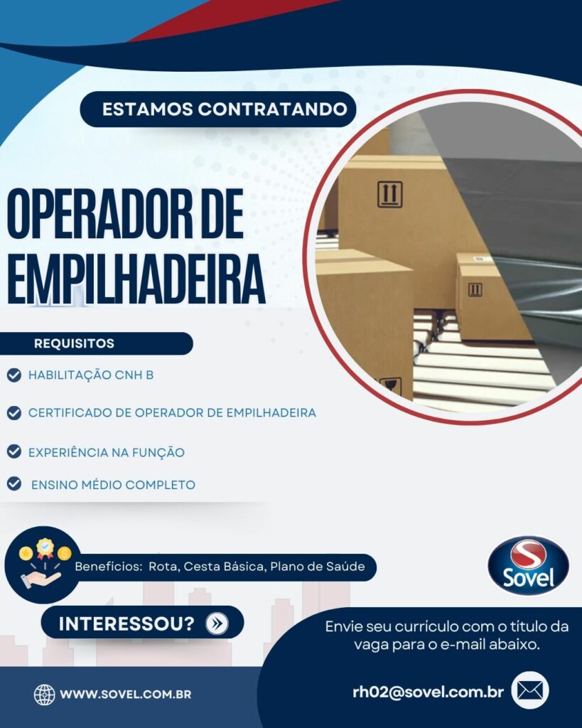 Sovel seleciona Eletricista industrial, Motorista de caminhão munck, Operador de empilhadeira, Operador de pá mecânica, Líder de Produção, Motorista de caminhão pranchinha; Envie seu currículo; Envie seu currículo!