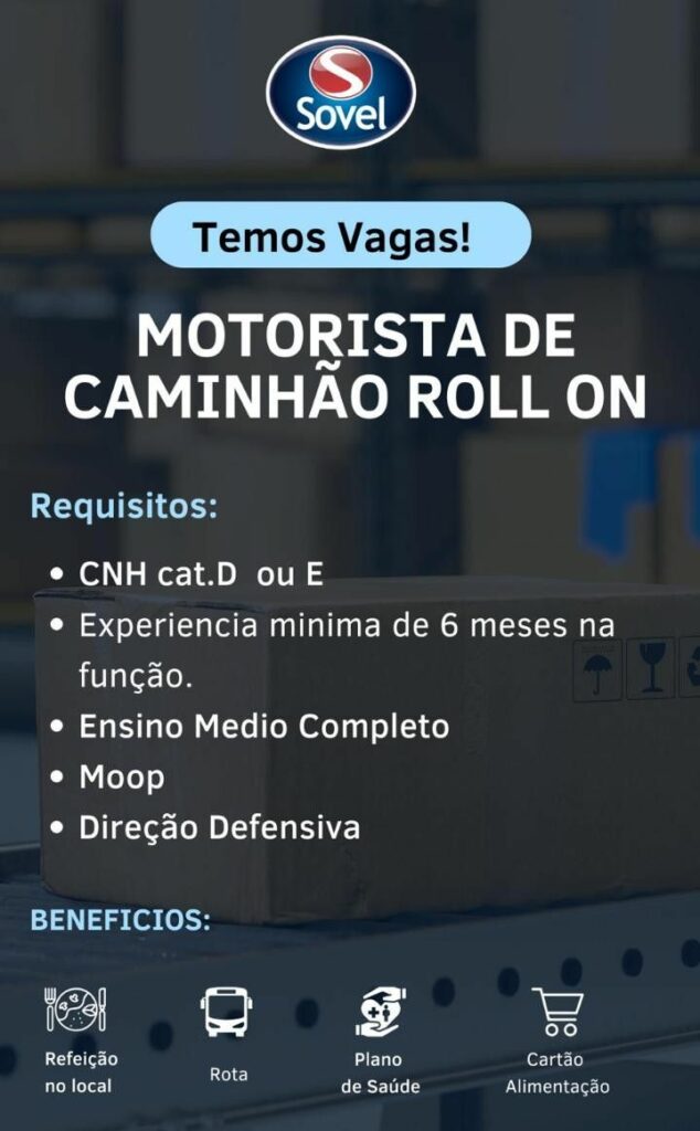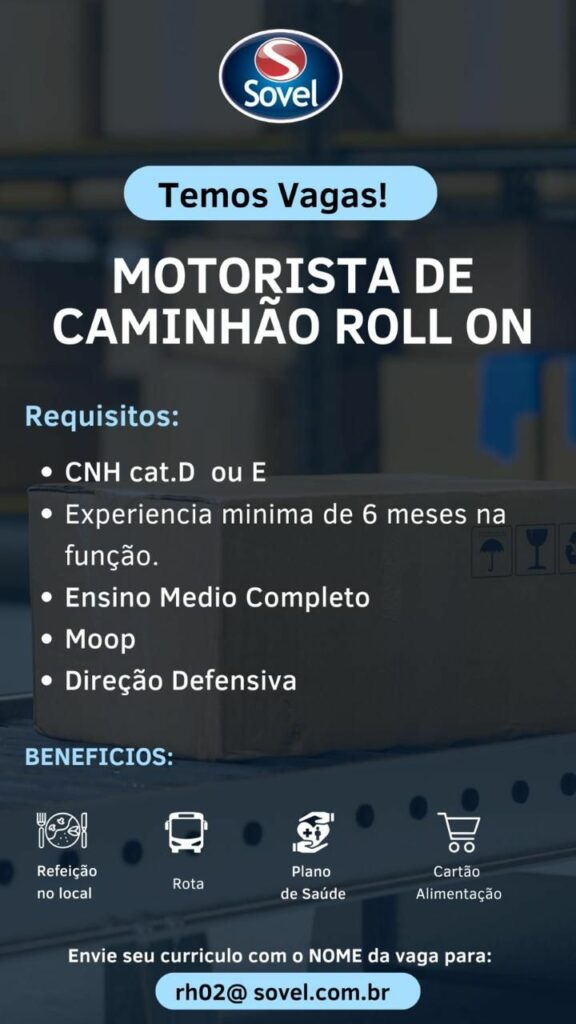 Sovel seleciona Motorista de caminhão Rollon; Envie seu currículo!