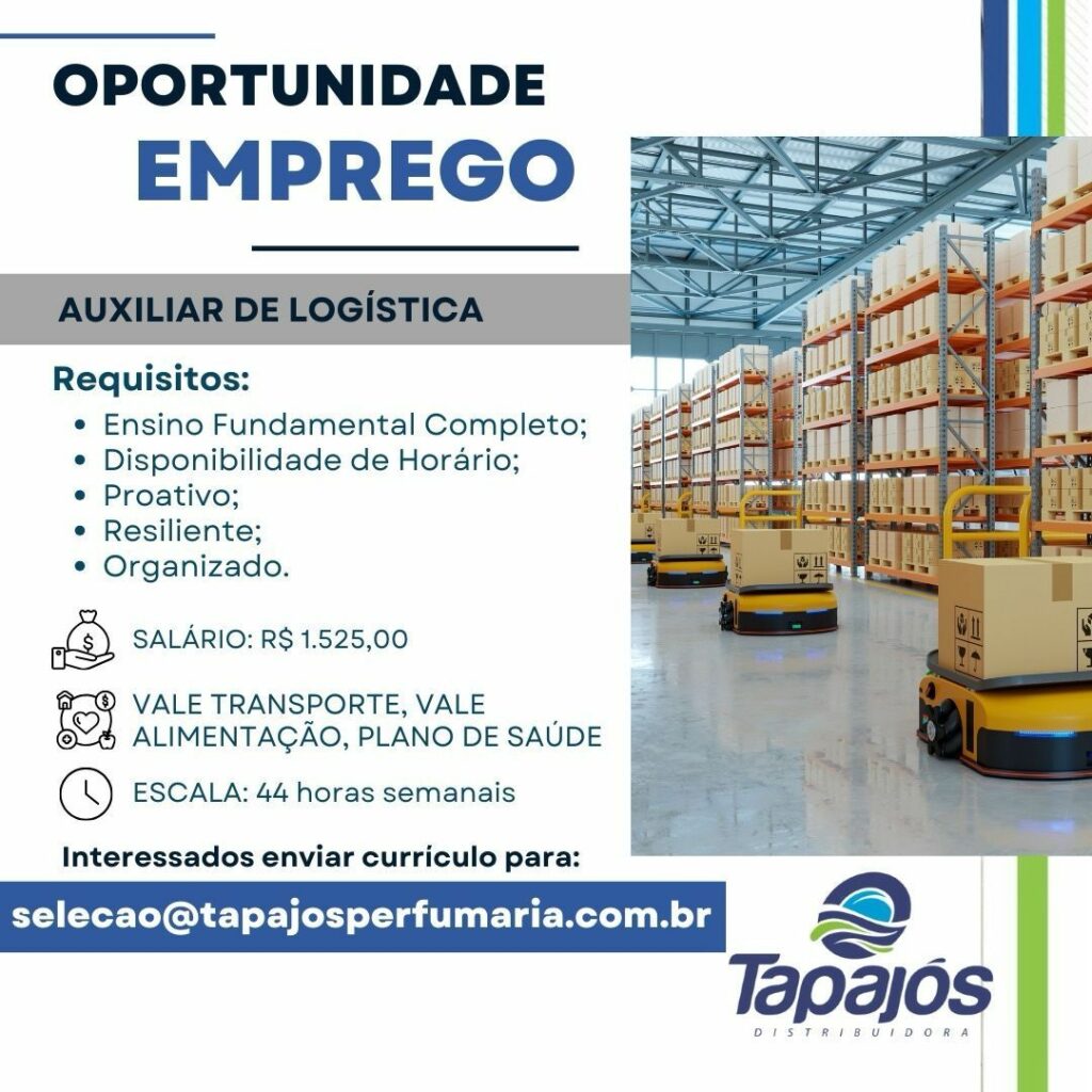 Tapajós perfumaria seleciona Auxiliar de logística; Envie seu currículo!