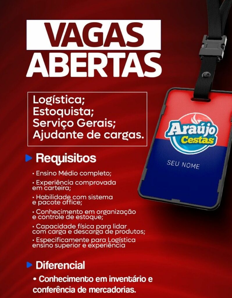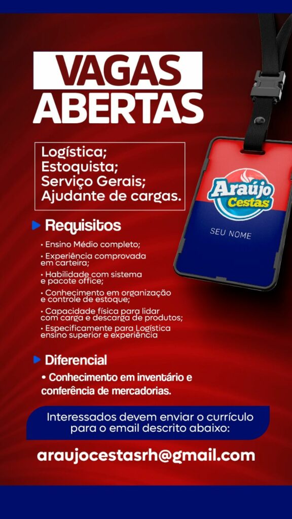 Araújo cesta seleciona Logística, Estoquista, Serviços Gerais, Ajudante de cargas; Envie seu currículo!