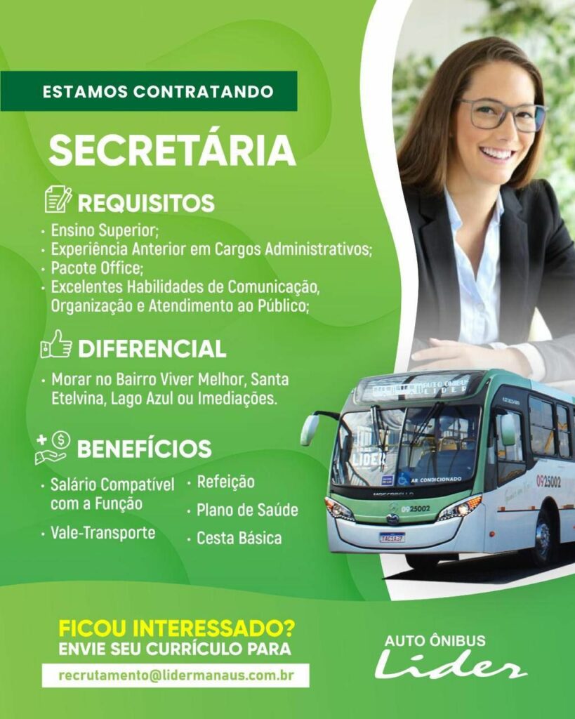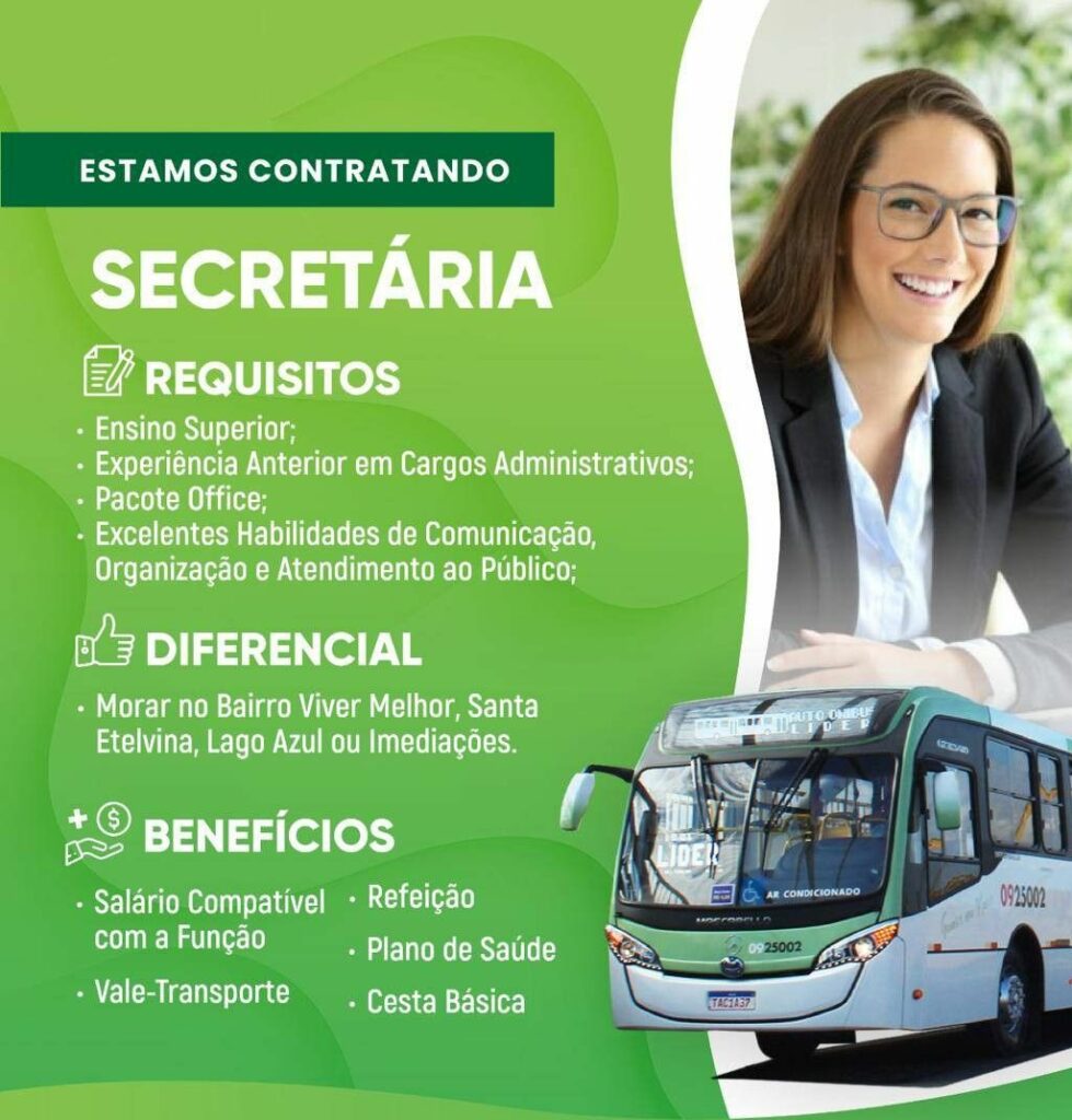 Auto ônibus Líder seleciona Secretária; Envie seu currículo!