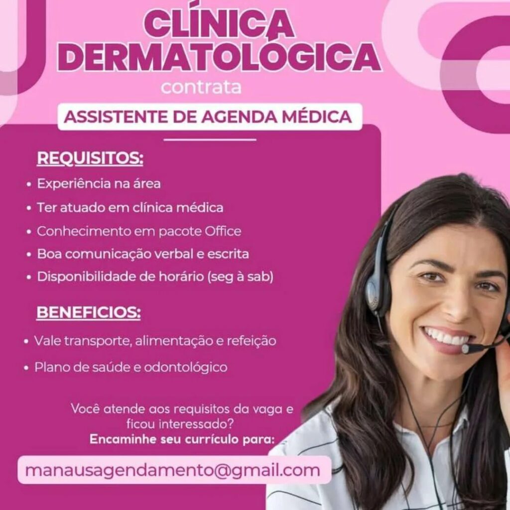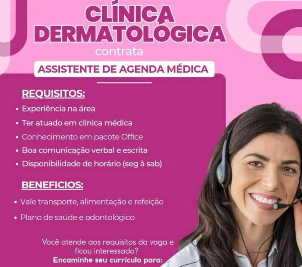 Clínica dermatológica seleciona Assistente de agenda médica; Envie seu currículo!