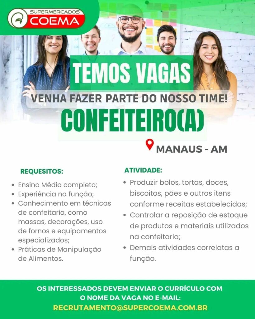 Seleção para vaga de Confeiteiro, Auxiliar de Padeiro, Repositor, Serviços Gerais; Envie seu currículo!