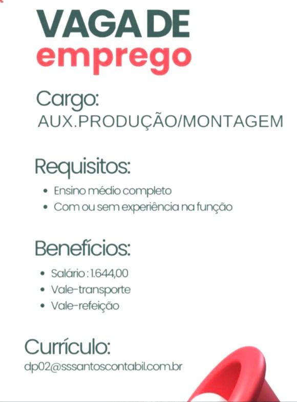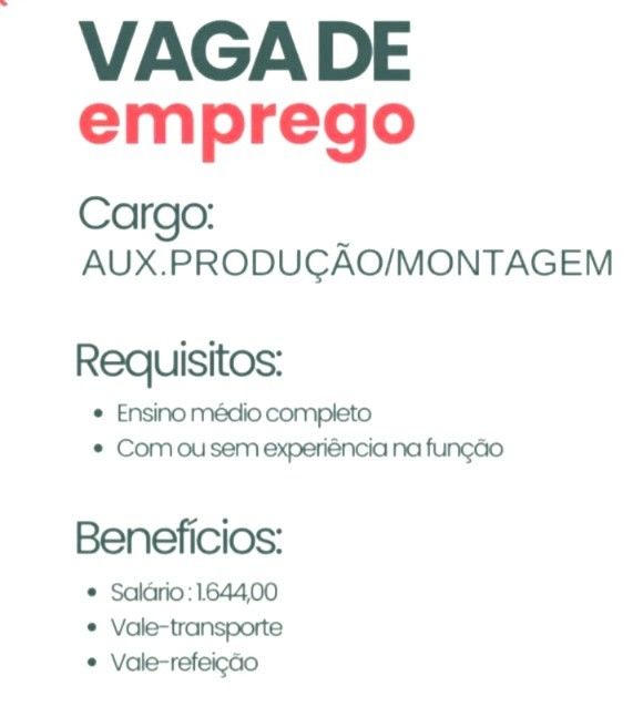 Com ou sem experiência! Empresa seleciona Auxiliar de produção montagem; Envie seu currículo!