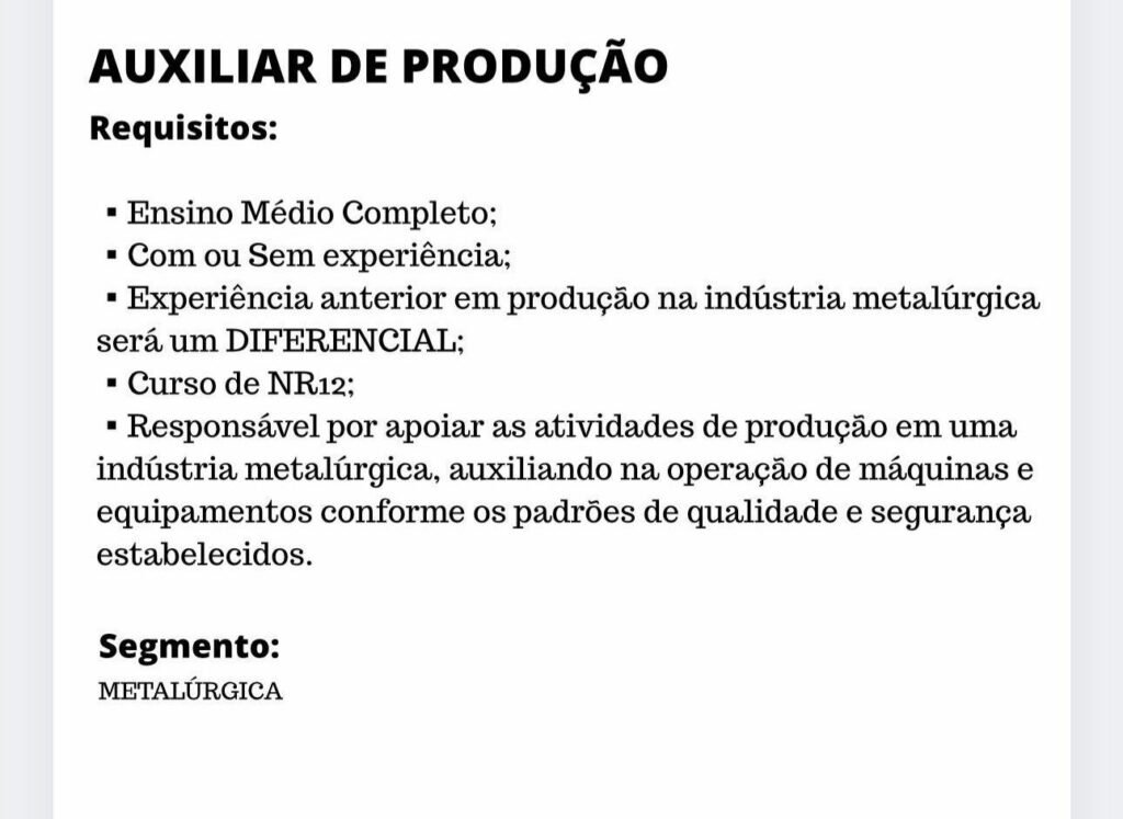 Com ou sem experiência! Empresa seleciona seleciona Auxiliar de produção; Envie seu currículo!