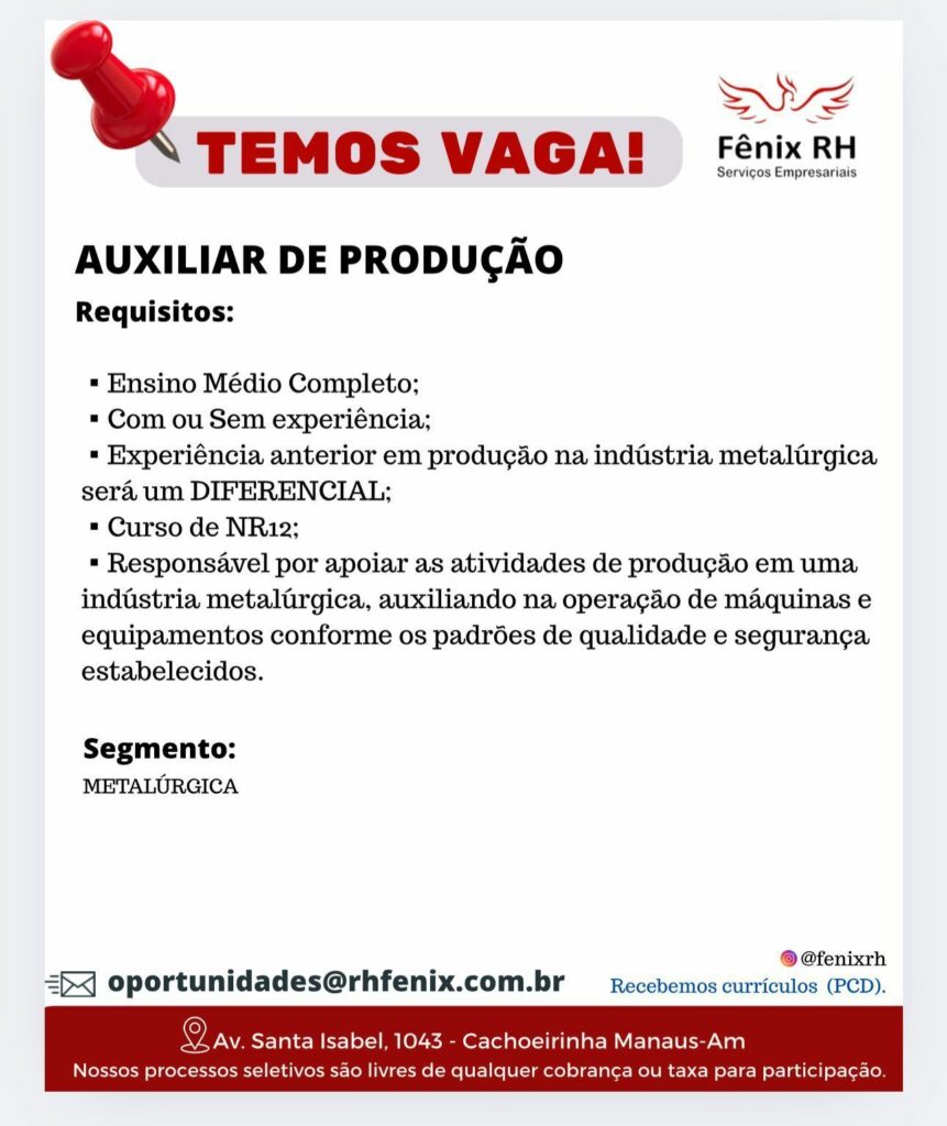 • Auxiliar de Produção e Jovem Aprendiz para Trabalhar na Honda da Amazônia