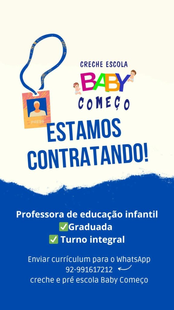Contrata-se Professora educação infantil, Estagiária pedagogia; Envie seu currículo!