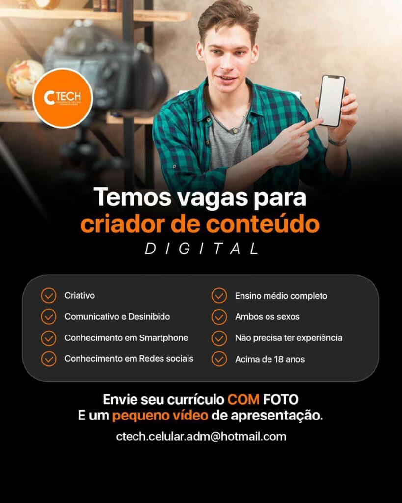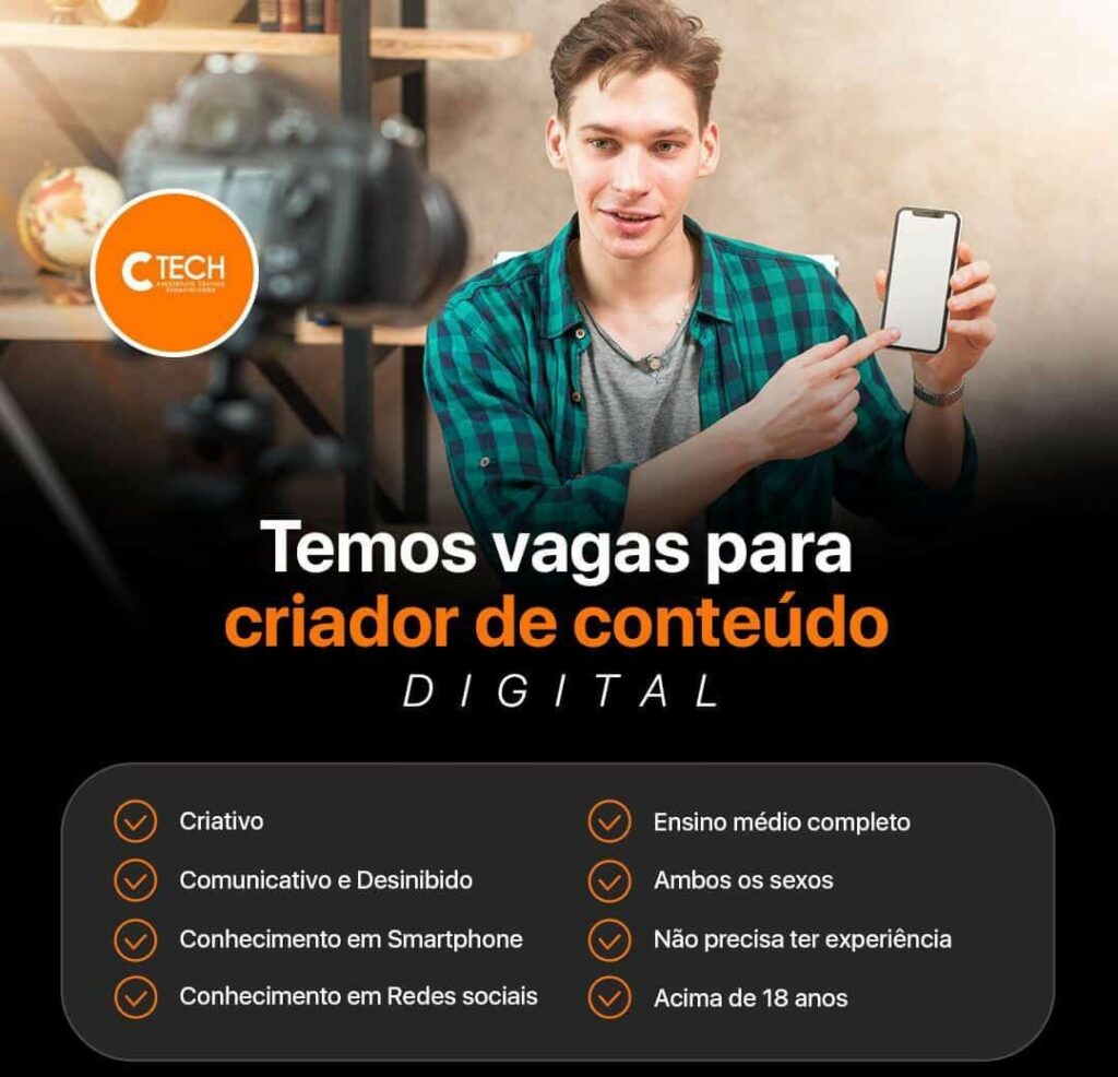 Ctech está selecionando Criador de conteúdo digital; Envie seu currículo!