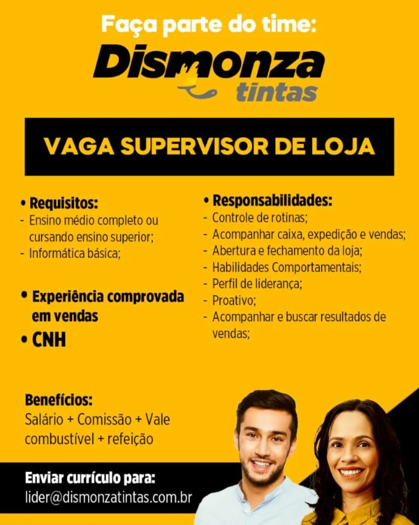 Dismonza tintas seleciona Supervisor de Loja; Envie seu currículo!
