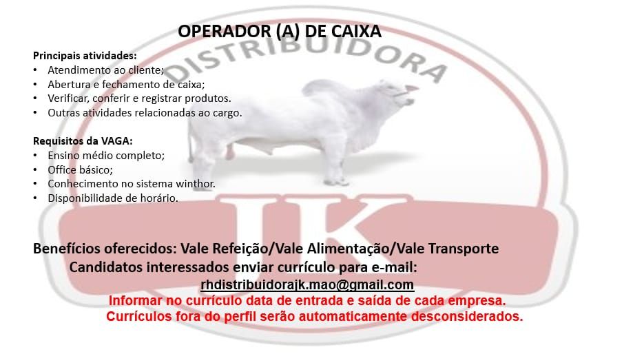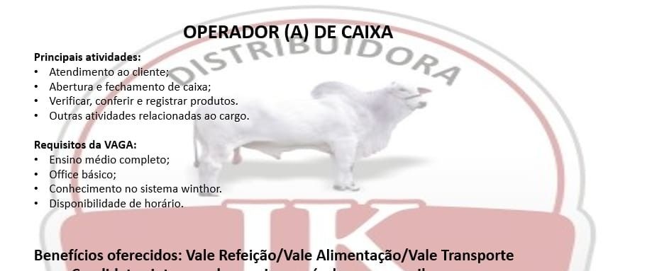Distribuidora seleciona para vaga de Operador (a) de caixa; Envie seu currículo!