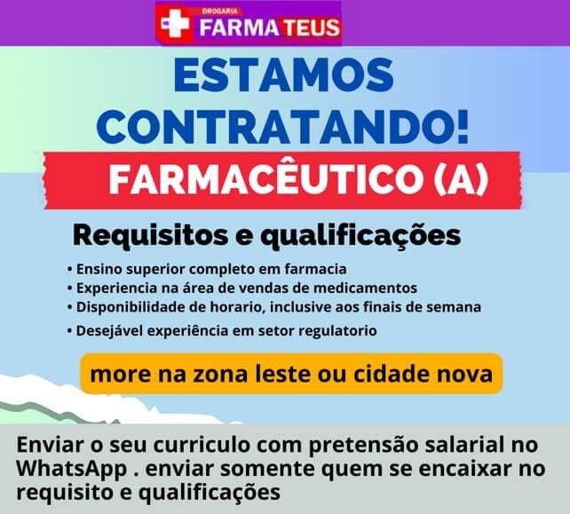Drogaria está selecionando Farmacêutico (a); Envie seu currículo!