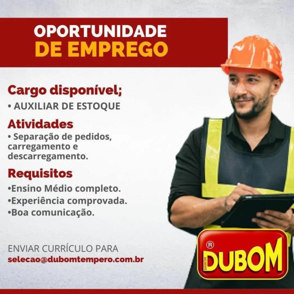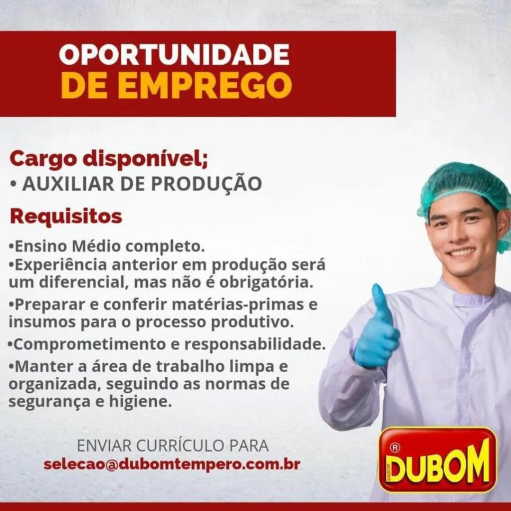 Dubom está selecionando Auxiliar de produção, Promotor de vendas, Vendedor externo, Auxiliar de estoque; Envie seu currículo!