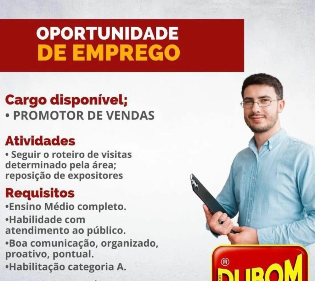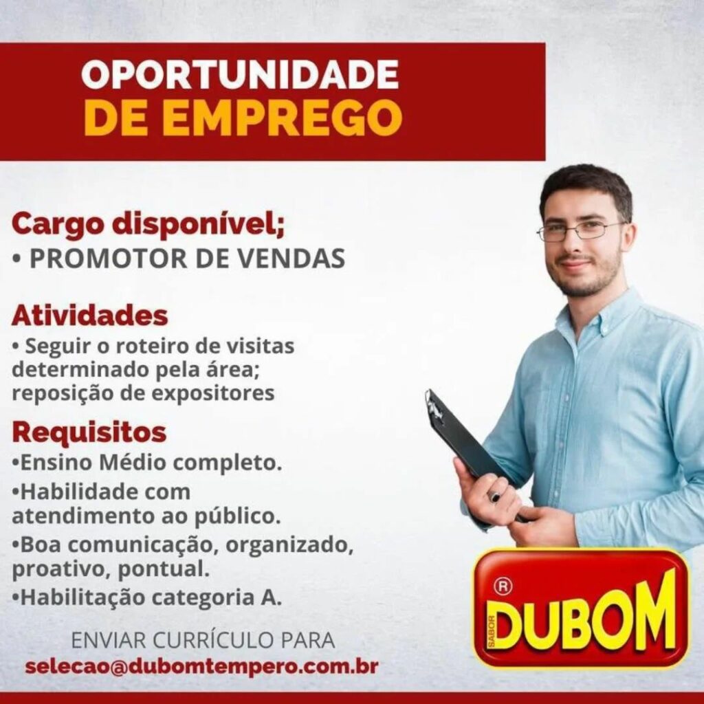 Dubom está selecionando Promotor de vendas, Auxiliar de estoque; Envie seu currículo!